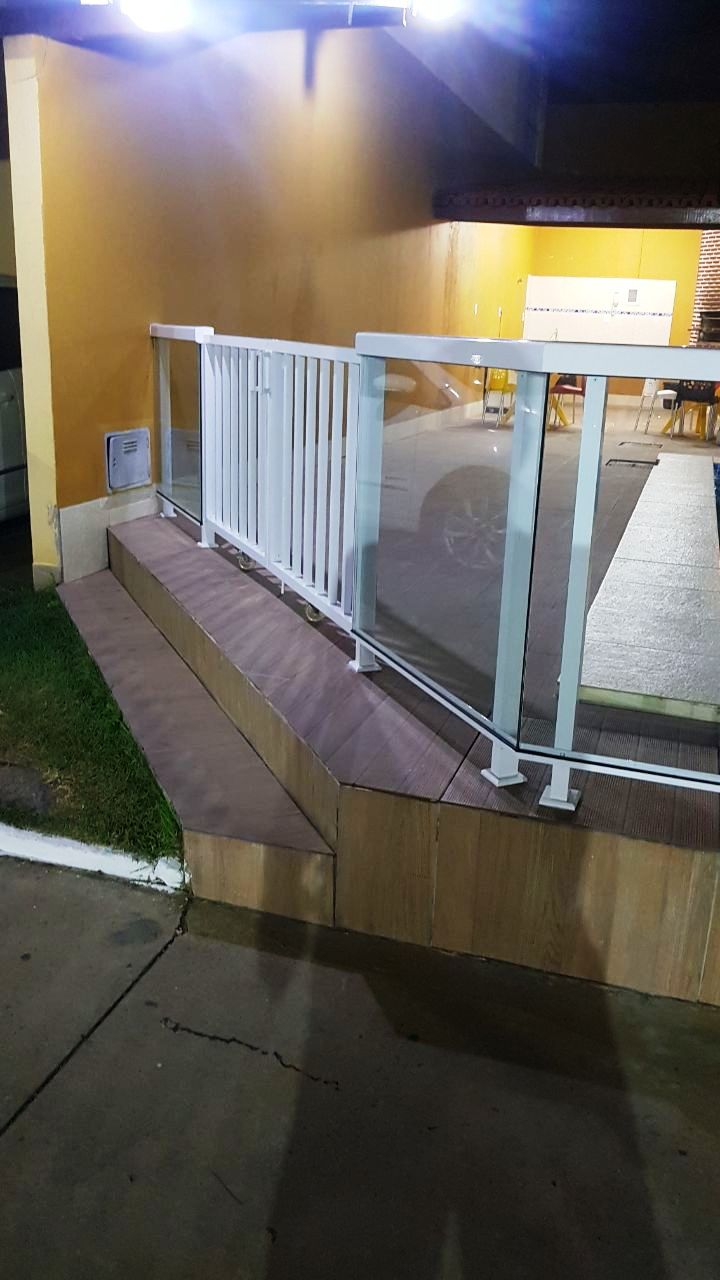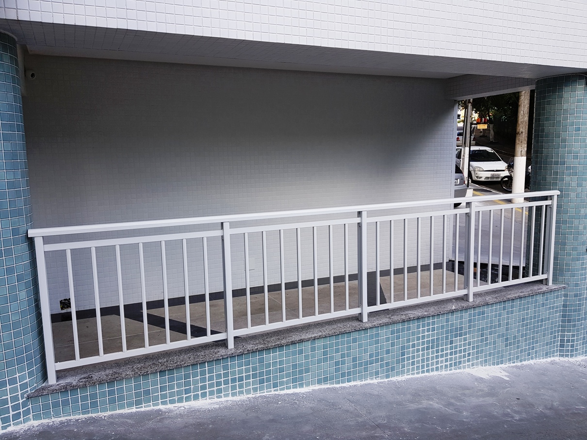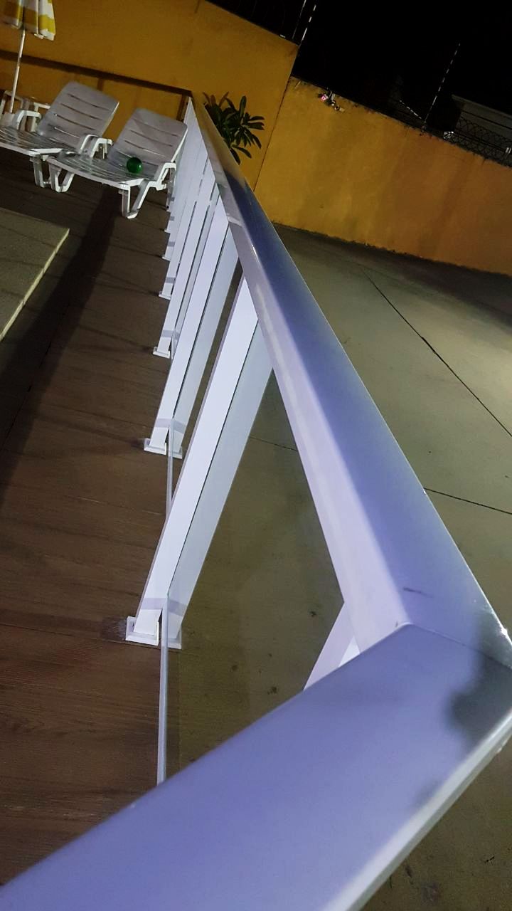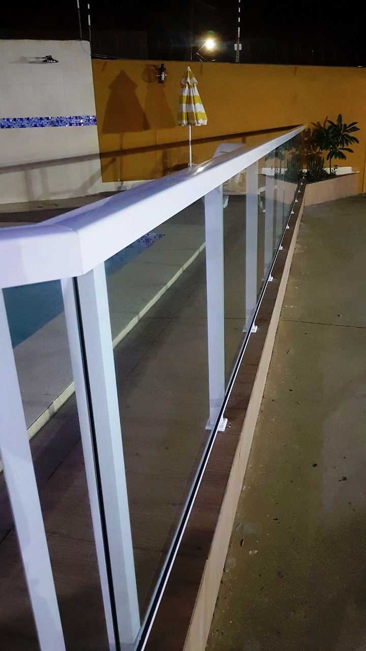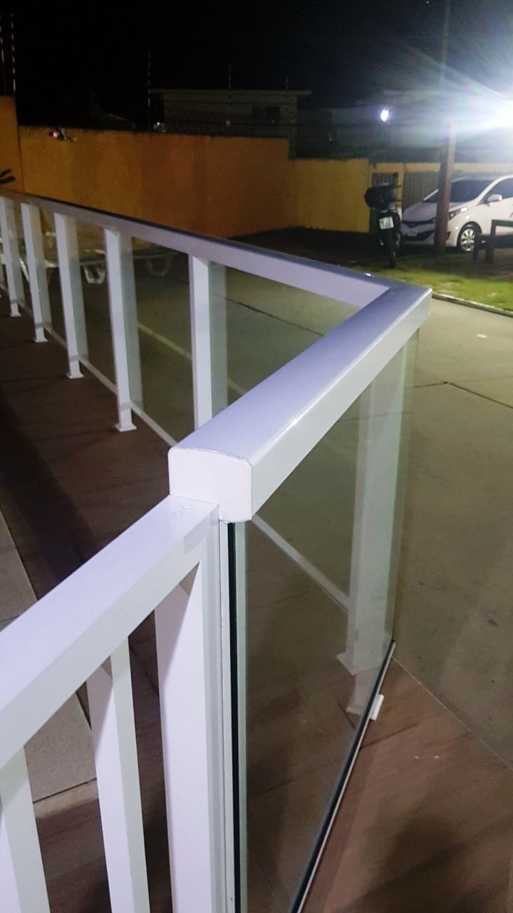 Guarda Corpo – Alumínio branco e vidro refletivo Prata