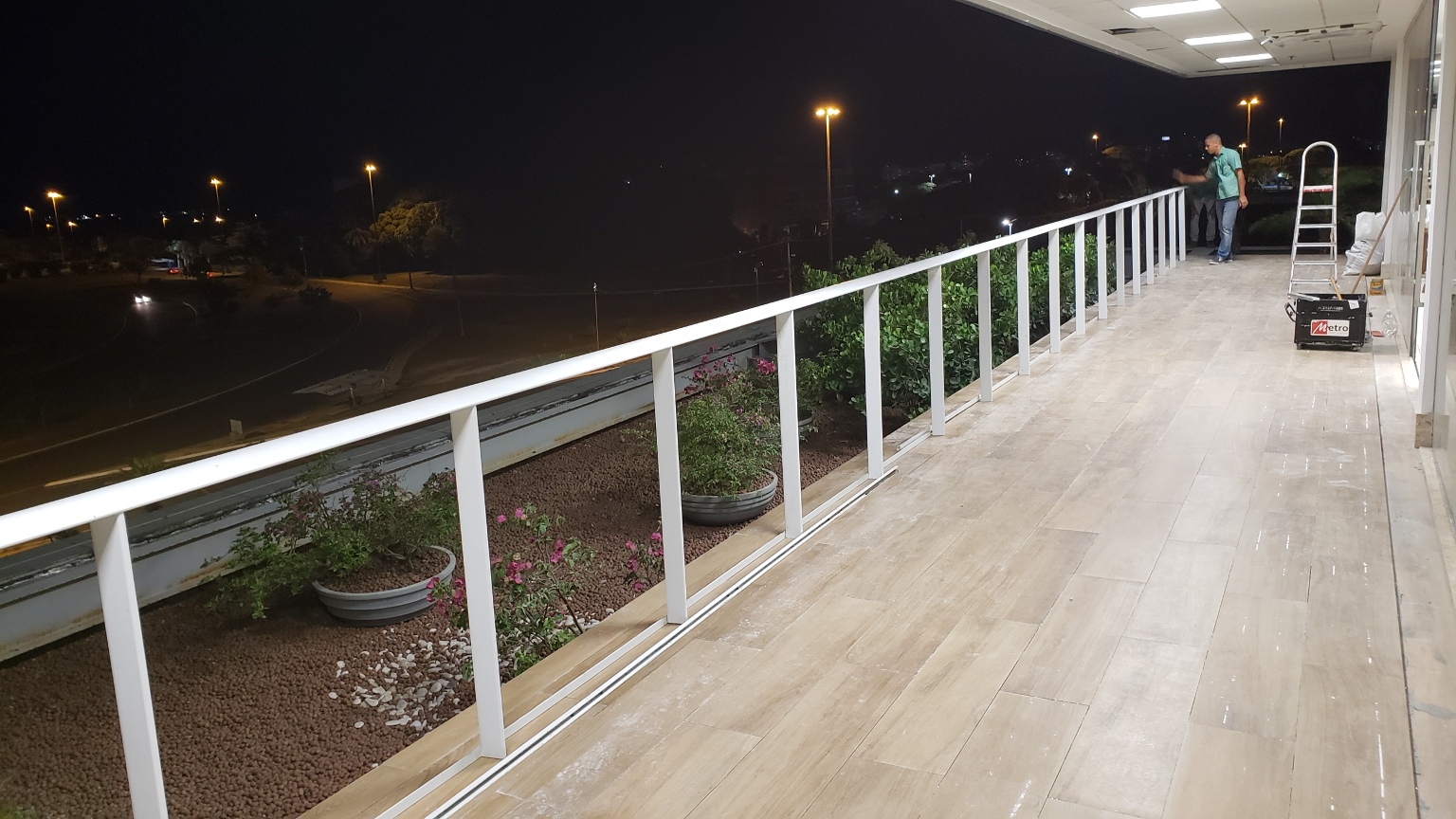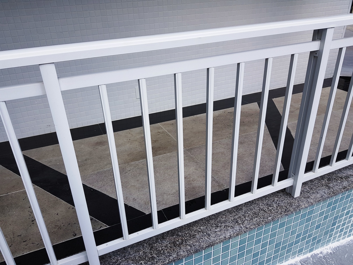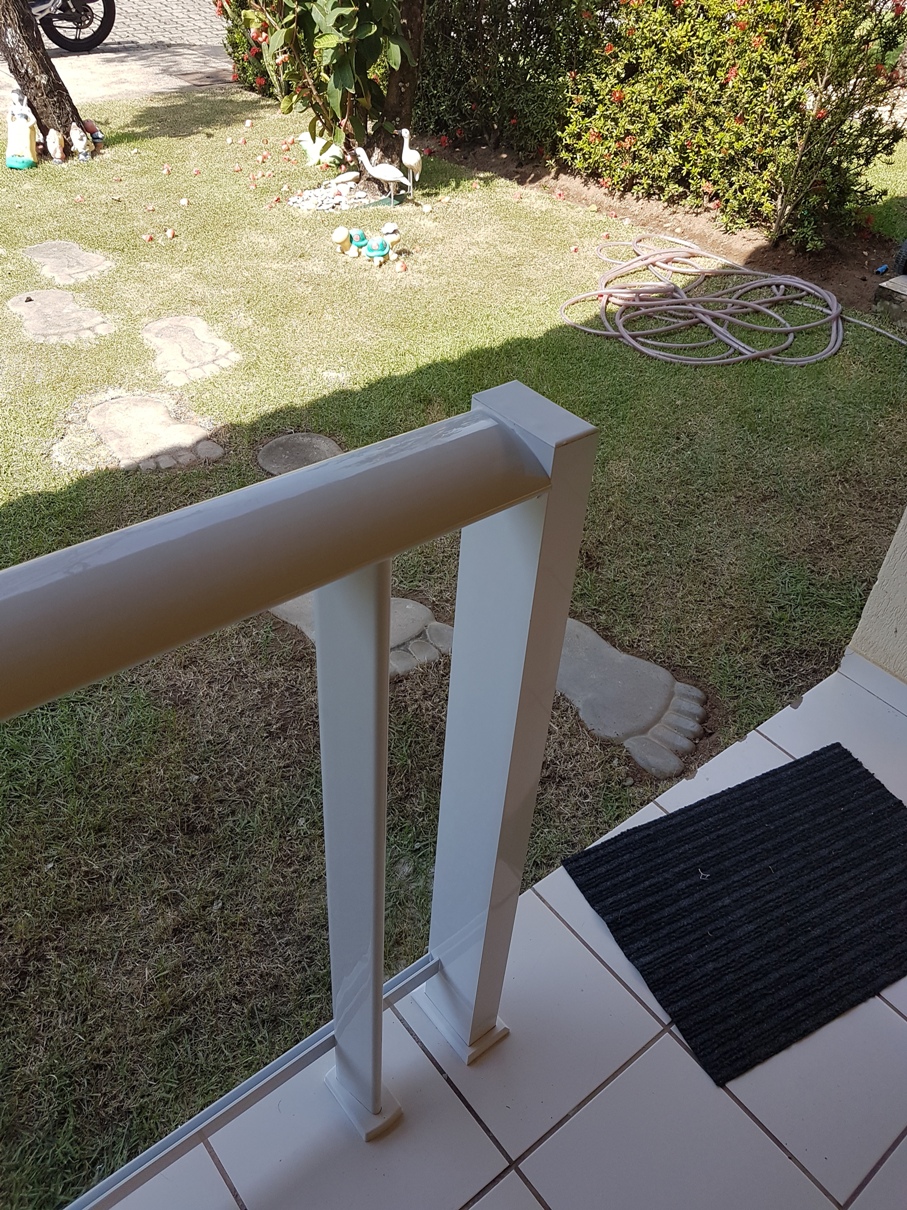 Guarda Corpo – Alumínio branco e vidro refletivo Prata