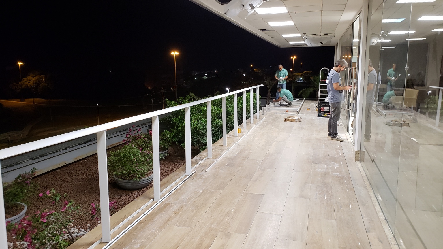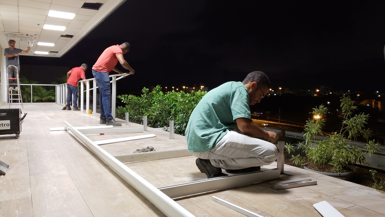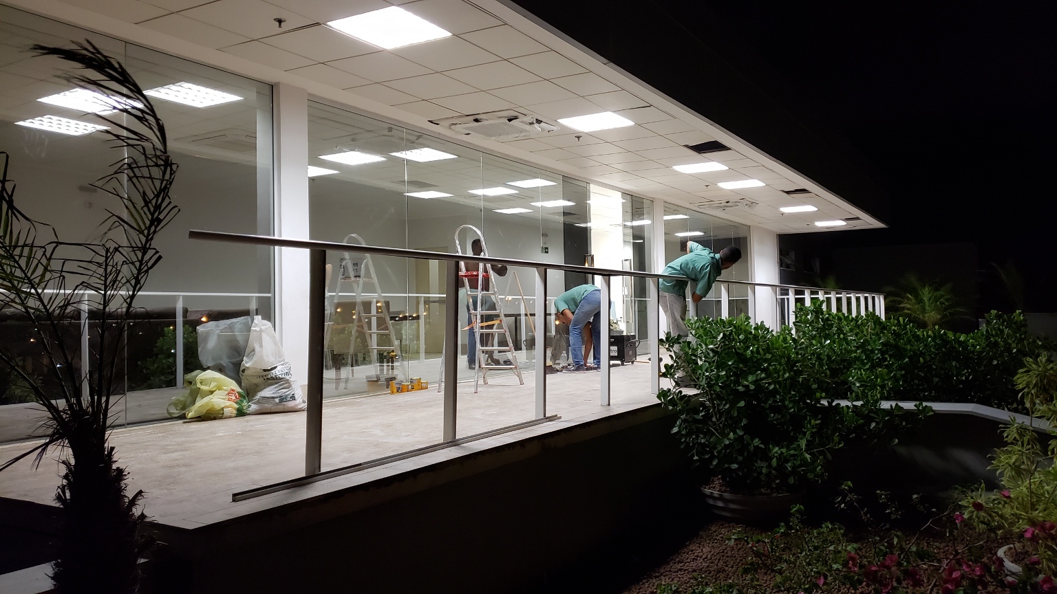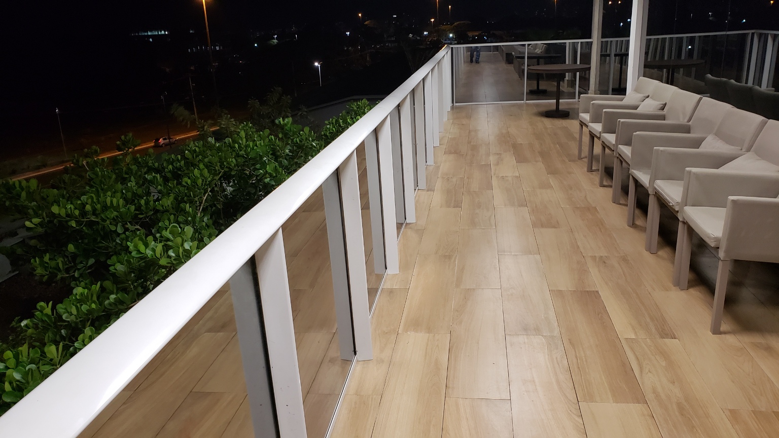 Guarda Corpo – Alumínio branco e vidro refletivo Prata